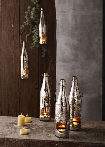 Botellas y tarros, hay una marca americana de tarros de cristal que se ven por todas partes y se utilizan mucho como decoración con velas dentro en bodas campestres, creo que son de las marcas Ball y Mason o eso se intuye, estoy segura de que te encantarán.